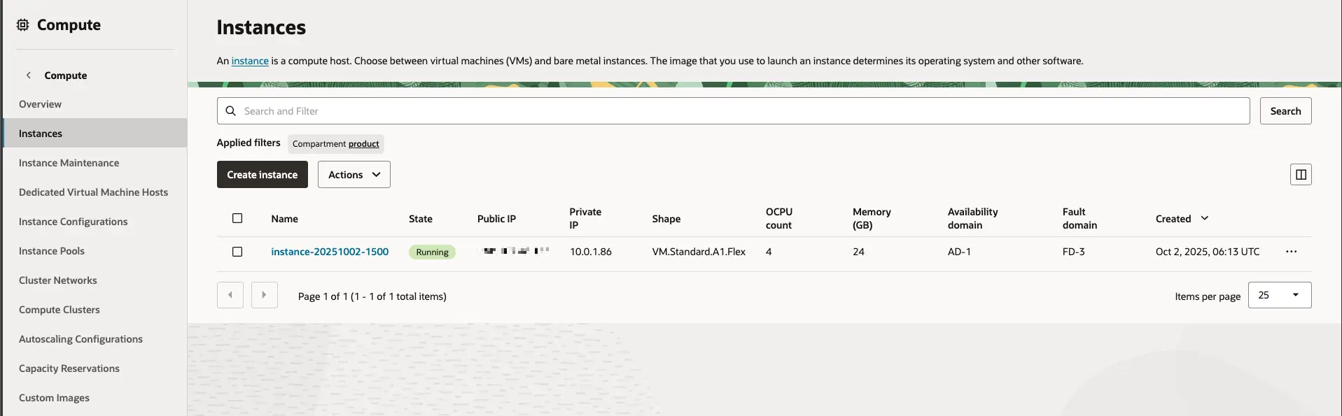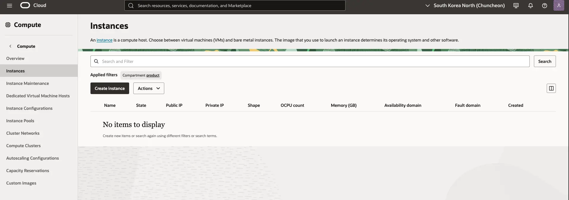이번 글에서는 오라클 클라우드의 컴퓨터 인스턴스 생성과 생성 시 옵션,