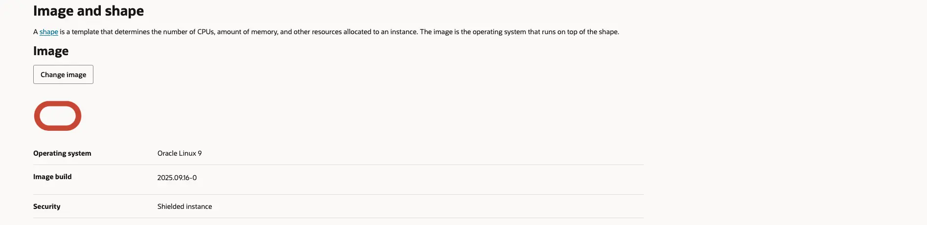 현재 1OCPU, 6GB Memory로 설정되어 있는데 이를 변경하기 위해 'Change shape'을 눌러주세요.