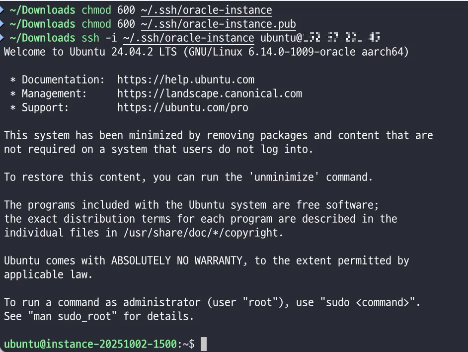 chmod 600 ~/.ssh/oracle-instance