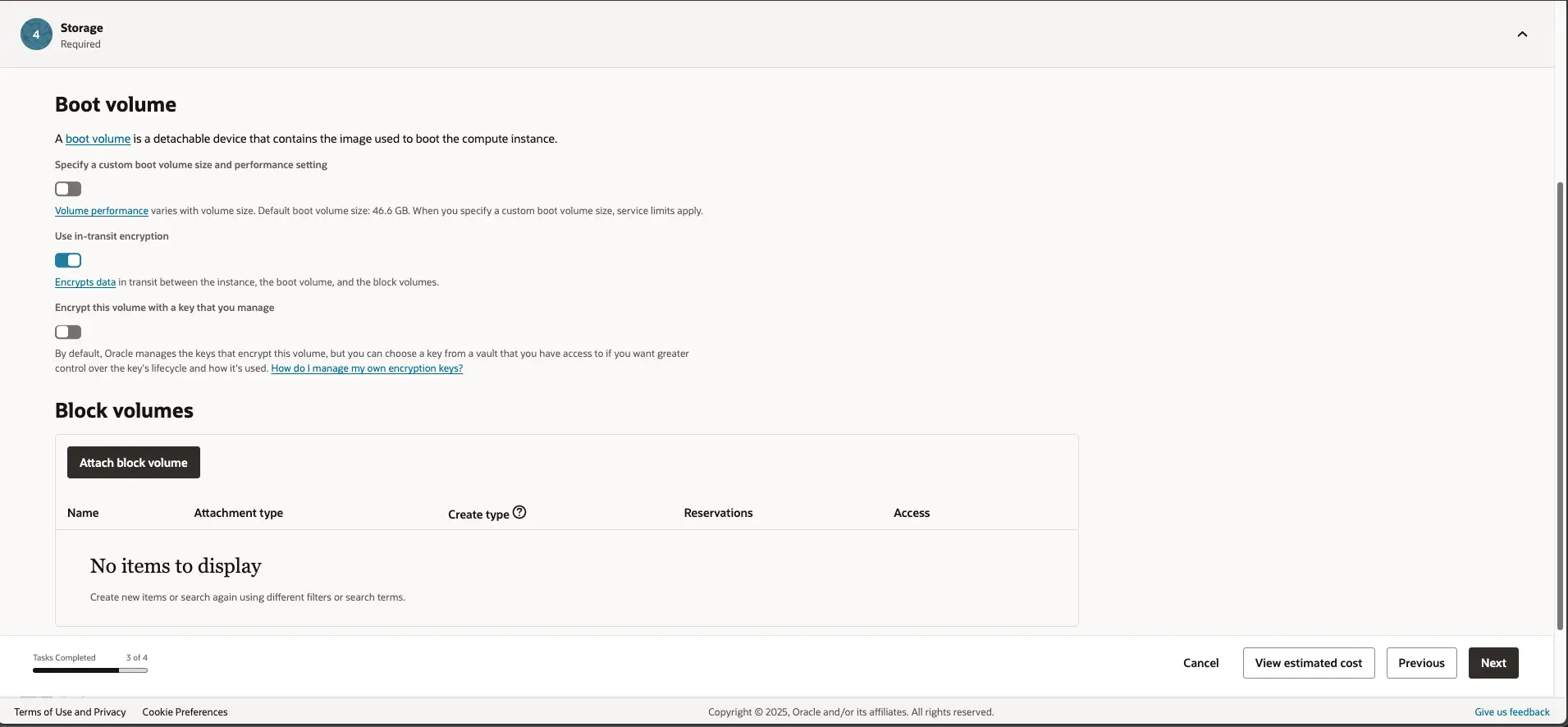 | Use in-transit encryption | 인스턴스와 부트 및 블록 볼륨간 데이터 전송 시 암호화 여부 | 기본 활성화 |