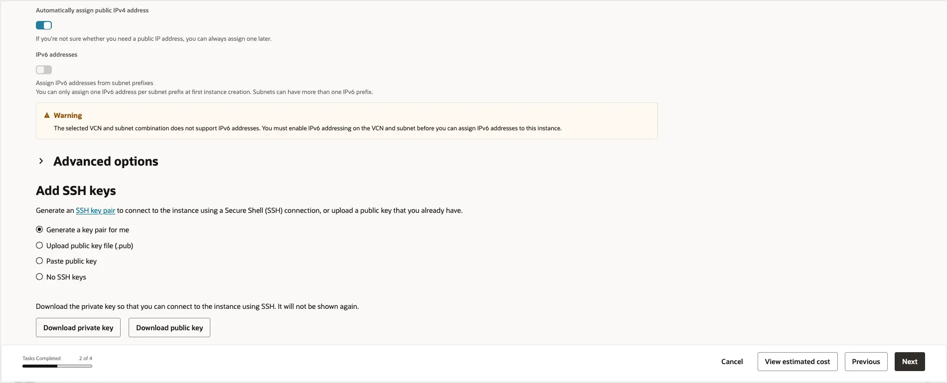 저는 'Add SSH keys' 부분에서 'Generate a key pair for me'를 선택했어요.