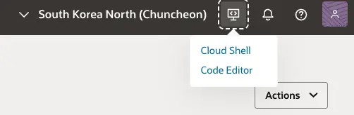 그리고 아래 화면과 같이 우측 상단의 컴퓨터 아이콘 -> Cloud Shell을 선택해 주세요.