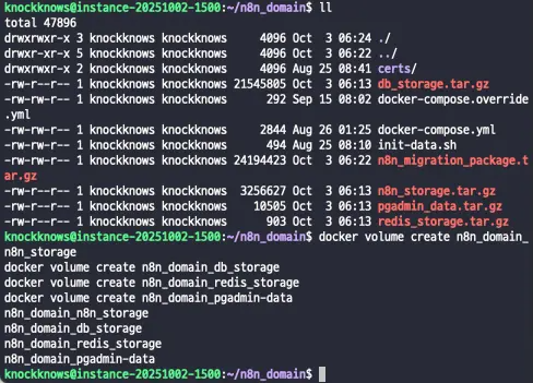 현재 제 N8N은 n8n_domain 이름을 가진 디렉터리 아래에서 구동중인데 볼륨 이름 앞에 디렉토리 이름이 붙어있어요.