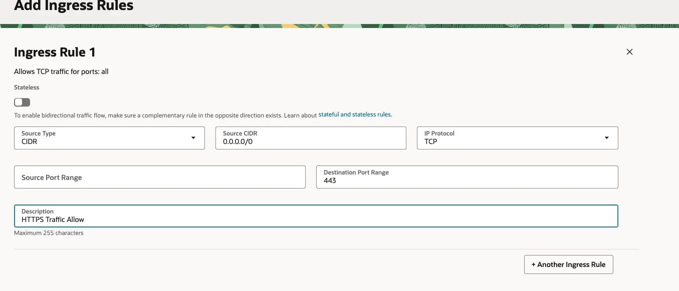 그럼 Security List에서 모든 소스에 대해서 443 포트가 허용돼요.