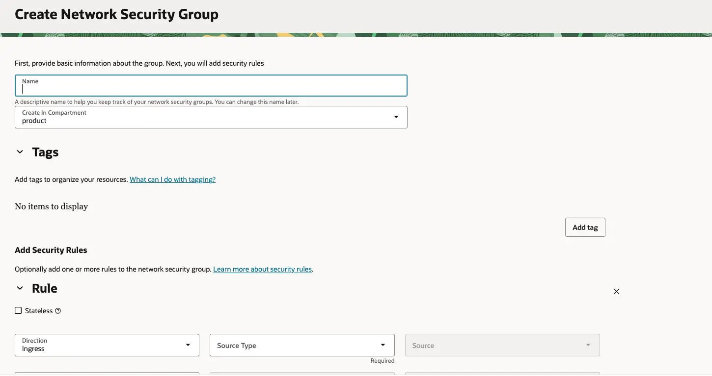 - Create In Compartment : NSG가 속할 Compartment 지정