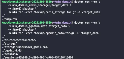 저는 PostgreSQL / Redis / N8N 3개의 볼륨을 백업해야 했어요.