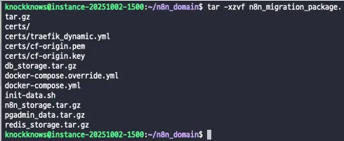 그럼 프로젝트 폴더 아래 모든 파일이 migration_package.tar.gz 이름으로 압축되어 떨어져요.
