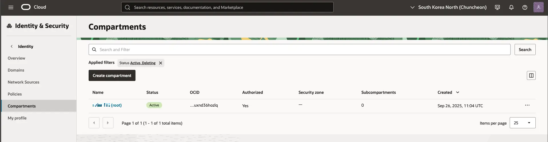 2025.10.13 - [오라클 클라우드] - 오라클 클라우드 - Identity Domain 생성 및 권한 할당