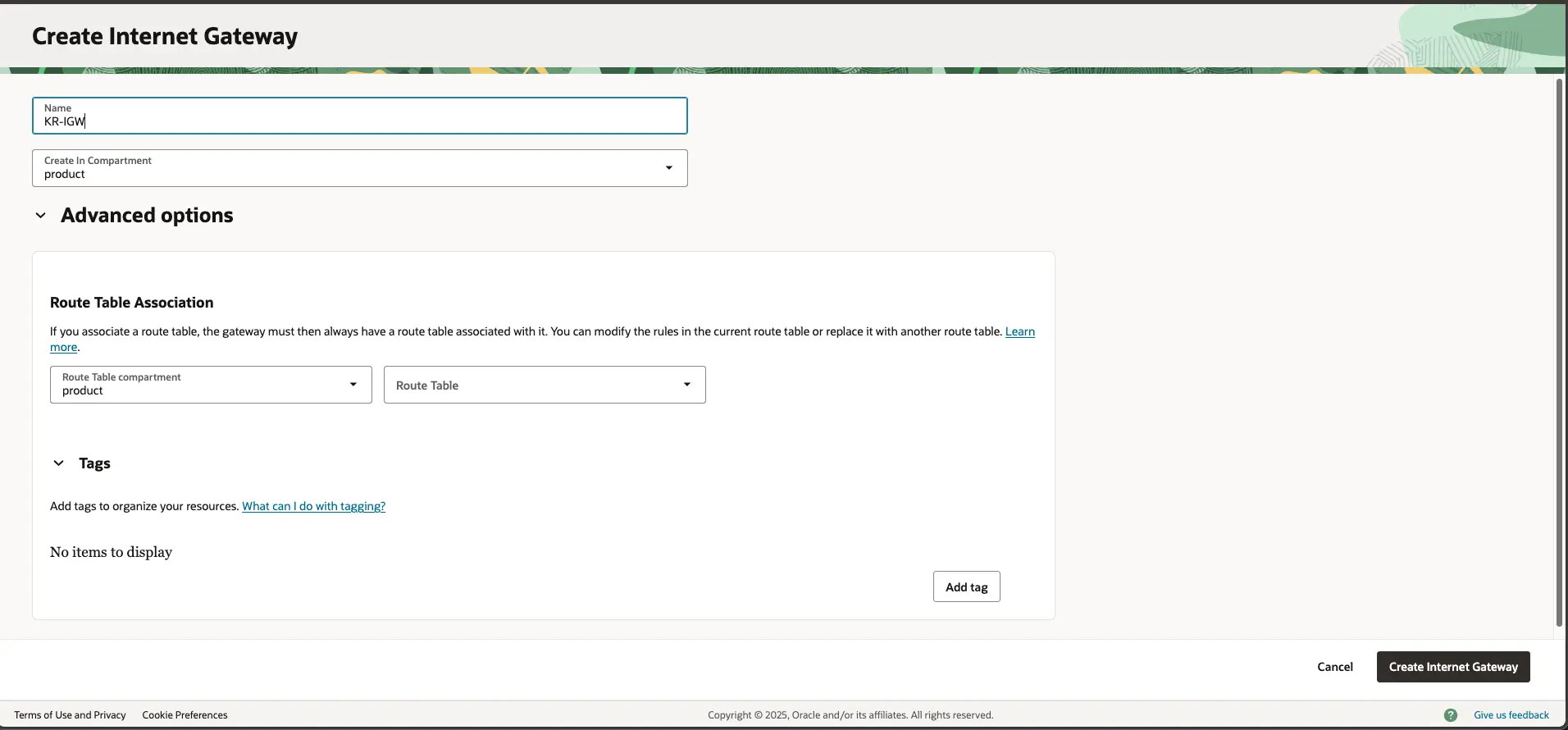 IGW는Oracle Cloud의 VCN을 인터넷과 연결해주는 게이트웨이예요.
